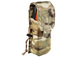 Подсумок закрывается на клапан с липучкой велкро и оснащён утягивающим шок-кордом вокруг, что надёжно защищает магазин от утери. Подсумок можно использовать в открытом виде, убрав клапан внутрь; в этом случае магазин удерживается утягивающей резинкой.