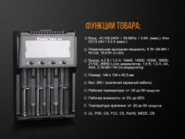Зарядное устройство работает при температуре окружающей среды от 20 градусов мороза, до 50 градусов жары. Температура во время его хранения может быть еще выше и достигать 80 градусов Цельсия. Такой же широкий диапазон допустимых параметров влажности: от 5% до 90%. Помимо того, производители снабдили данную модель защитой от перегревания аккумуляторов, от переполюсовки и коротких замыканий. Кроме того, сразу же по завершении процесса зарядки, устройство отключает соответствующий слот, чтобы аккумулятор не подвергался перезарядке.